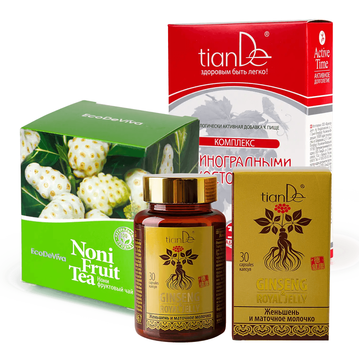 Поддерживай свой организм натуральными средствами от TianDe! Фруктовый чай «Нони», на 100% состоящий из одноименного фрукта-суперфуда, подарит заряд отличного настроения и позаботится об иммунитете. «Комплекс с виноградными косточками»* будет защищать клетки от свободных радикалов, укреплять сердечно-сосудистую систему и поддерживать молодость, а «Женьшень и маточное молочко»* вернет яркость и активность жизни! Весь комплекс – по привлекательной цене! Условия Купи фруктовый чай «Нони» + БАД к пище «Комплекс с виноградными косточками»* – В ПОДАРОК БАД к пище «Женьшень и маточное молочко»*! 1 + 1 = 3 БАД. Не является лекарством. На территории РФ маркированные товары можно приобрести только с онлайн-оплатой или частичной оплатой с бонусного счета.