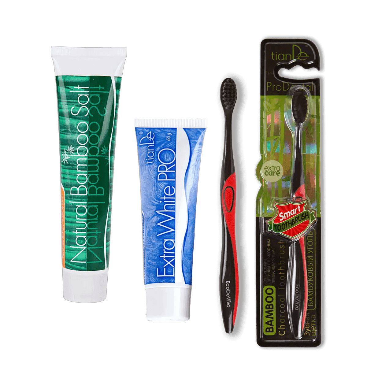 В набор «Белоснежная улыбка» входят: гель для зубов «Натуральная соль бамбука»; зубная паста Extra White PRO; зубная щетка «Бамбуковый уголь». Хорошее настроение делает человека привлекательным, а улыбка становится главным украшением. Линейка TianDe предлагает эффективные средства для ухода за полостью рта. Заботьтесь о себе легко и с удовольствием – пусть ваша улыбка сияет, а каждый день начинается с ощущения свежести и уверенности!