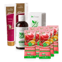 В набор «Без узлов и капиллярной сетки» входят: фитогель для ног «Славитон»; эмульсия для ног «Лесной оберег»; напиток «Фиторелакс для ног», 7 шт. Средства с природными венотониками помогают снимать усталость и тяжесть в ногах, а также укрепляют стенки сосудов и служат для профилактики варикоза. Комплекс работает изнутри и снаружи: гель и эмульсия обеспечивают локальный тонус вен и охлаждение, а напиток усиливает эффект за счет растительных экстрактов в составе. Регулярное использование набора помогает снизить риск появления отеков, сосудистых звездочек и чувства «тяжелых ног» в конце дня.
