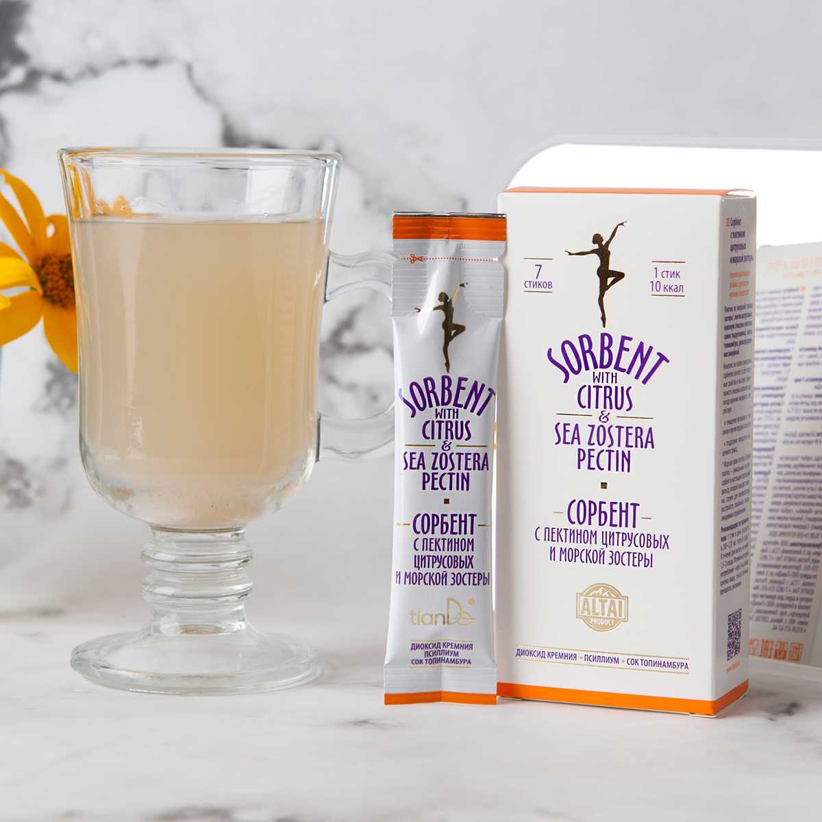 Еще не встал – уже устал? Частые простуды и аллергические реакции? Нарушение работы желудочно-кишечного тракта? Последствия веселой вечеринки? Твой организм требует поддержки и очищения! Сорбент с пектином цитрусовых и морской зостеры поможет вернуть отличное самочувствие! Комплекс на основе самых действенных природных сорбентов сочетает в себе полезные свойства и высокую эффективность пищевых волокон и диоксида кремния аморфного. Работая вместе, они: - связывают и выводят из организма токсины, аллергены, вредоносные бактерии и прочие раздражающие вещества; - повышают способность организма противостоять инфекциям; - поддерживают работу желудочно-кишечного тракта; - оказывают обволакивающее и защитное действие на слизистую; - восстанавливают естественный микробиом в кишечнике; - снижают токсическую нагрузку на печень. Сорбент – многофункциональный продукт. Когда он нужен? - Устоявшаяся интоксикация; - нарушение работы печени и ЖКТ, расстройства желудка; - аллергические реакции; - ОРВИ и симптомы интоксикации (головная, суставная боль, слабость и пр.); - прием алкоголя (токсическая нагрузка на печень); - кожные высыпания и внешние воспаления (любое воспаление выделяет в кровь токсичные вещества, избавившись от которых можно вернуть коже безупречность). Без ГМО. Всего 10 килокалорий в стике. Наслаждайся легкостью и отличным самочувствием с сорбентом от TianDe!
