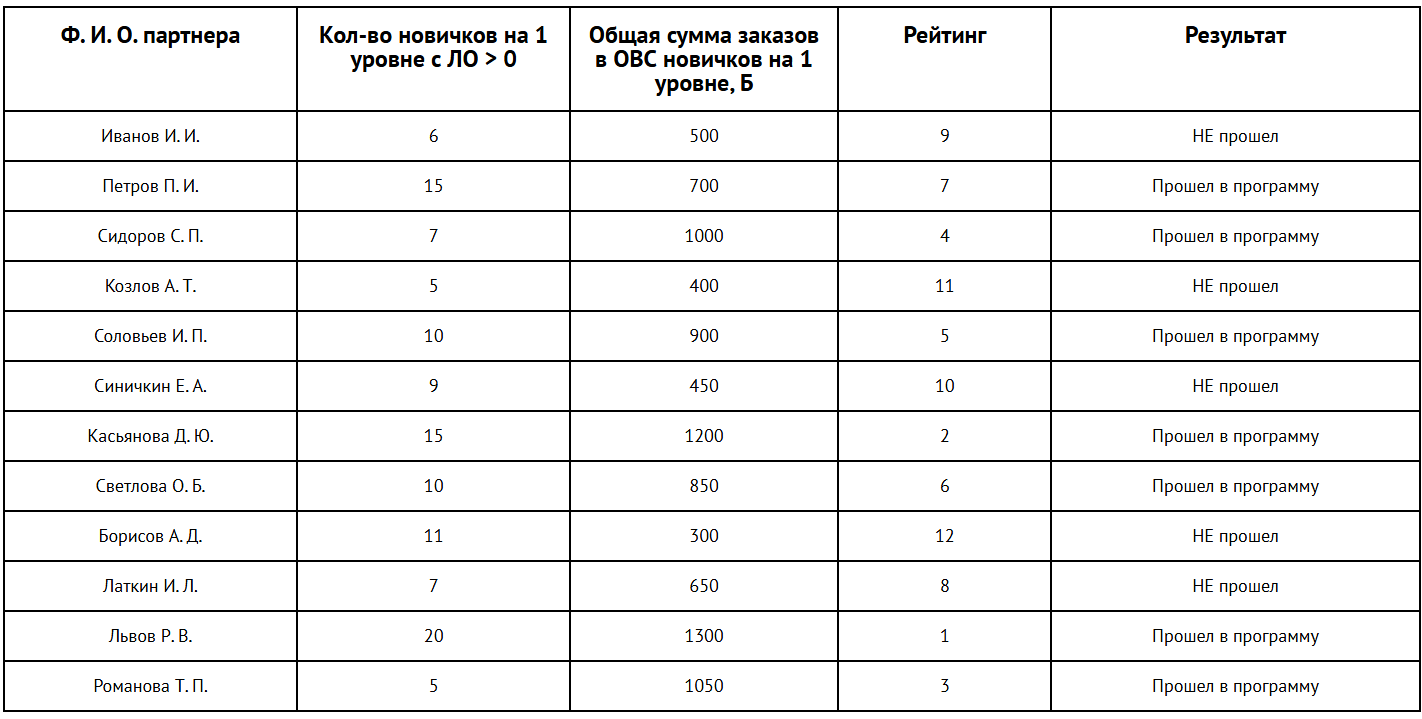 Общее количество участников программы «Авторекрутинг» определяется администрацией ОВС. Список обновляется ежемесячно на основании активности партнеров в предыдущем календарном месяце.