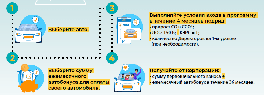 Условия автопрограммы максимально простые и прозрачные. До автомобиля всего 4 шага!