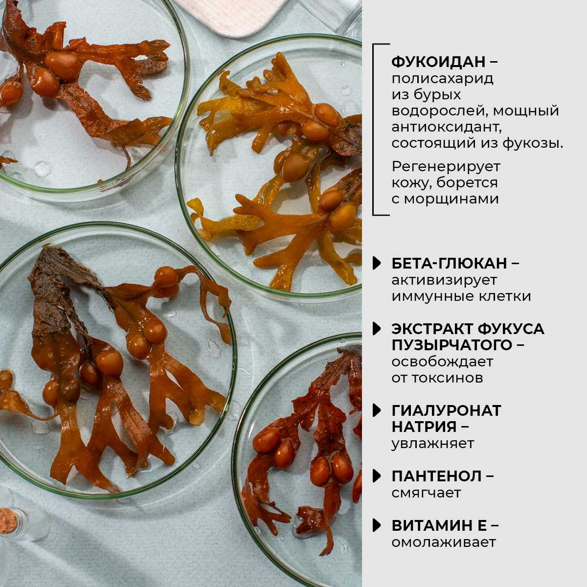 Побалуй свою кожу кремовой сливочной текстурой, наполненной питательными и омолаживающими компонентами... Побалуй ее новой маской для лица и зоны декольте серии Fucoidan! Она ответит тебе красотой и молодостью, свежестью и сиянием, которые будут видны без «маскировки»! Включи приятную музыку, нанеси омолаживающую крем-маску, закрой глаза, расслабься и позволь активным компонентам сделать свое дело! Они великолепно увлажнят кожу, ощутимо повысят ее тонус и смягчат выраженные мимические морщины. Готово! После этой процедуры ты можешь наслаждаться своим отраженим в зеркале!