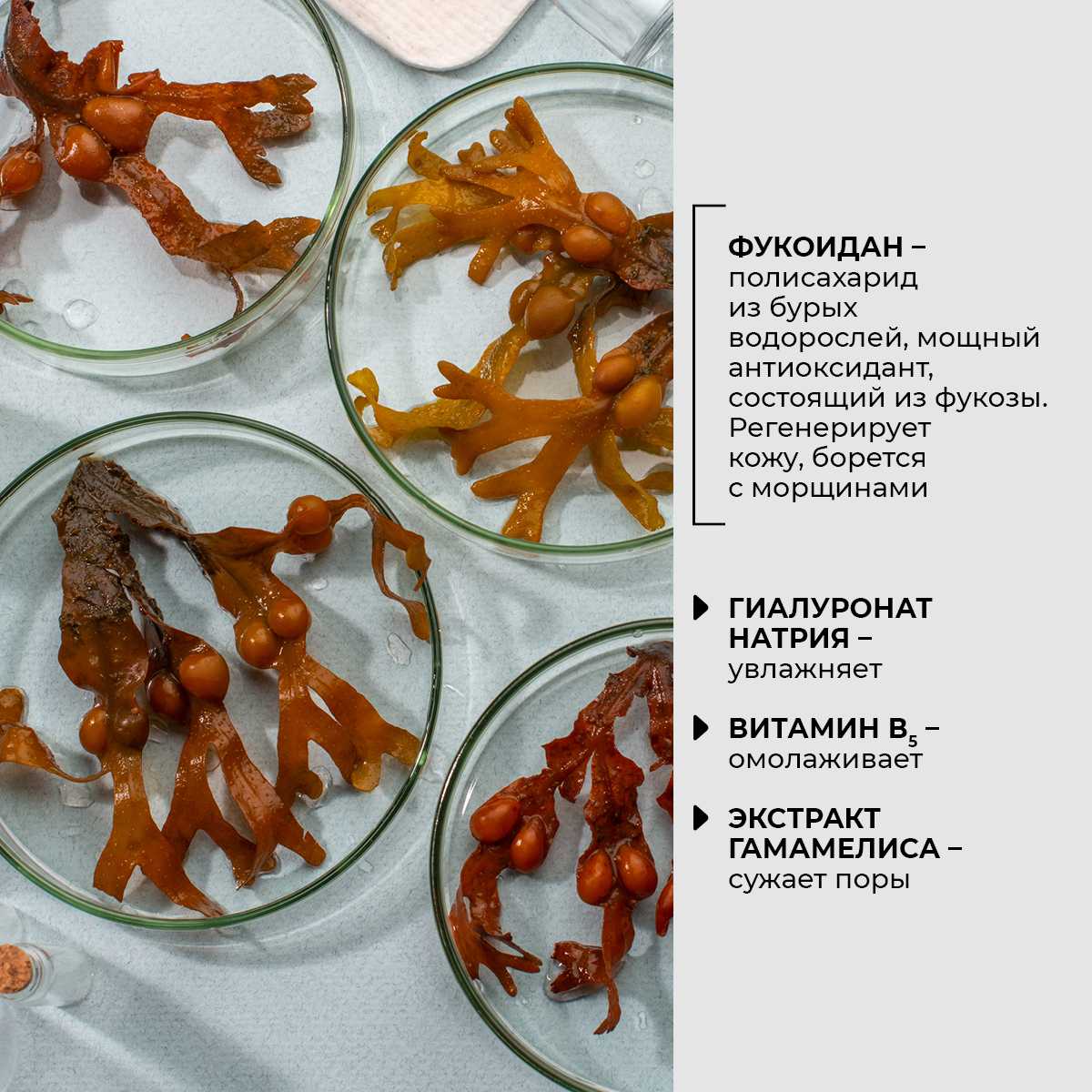 «Идеально чистая кожа» – главная, но не единственная задача очищающего лосьона Fucoidan, с которой он успешно справляется. С помощью этого средства ты не только качественно завершишь очищение кожи, но и повысишь эффективность кремов последующего ухода на 20-30%. Удалить остатки макияжа? Освободить кожу от загрязнений и отмерших клетки? С очищающим лосьоном Fucoidan ты легко сможешь добиться идеальной чистоты и свежести кожи! Он не содержит спирта, а значит, воздействует на кожу максимально бережно. Благодаря фукозе и другим эффективным компонентам в составе во флаконе лосьона гармонично сочетается тщательное очищение, интенсивное увлажнение и антиэйдж-действие. Ощути на себе силу «Фукоидана»!