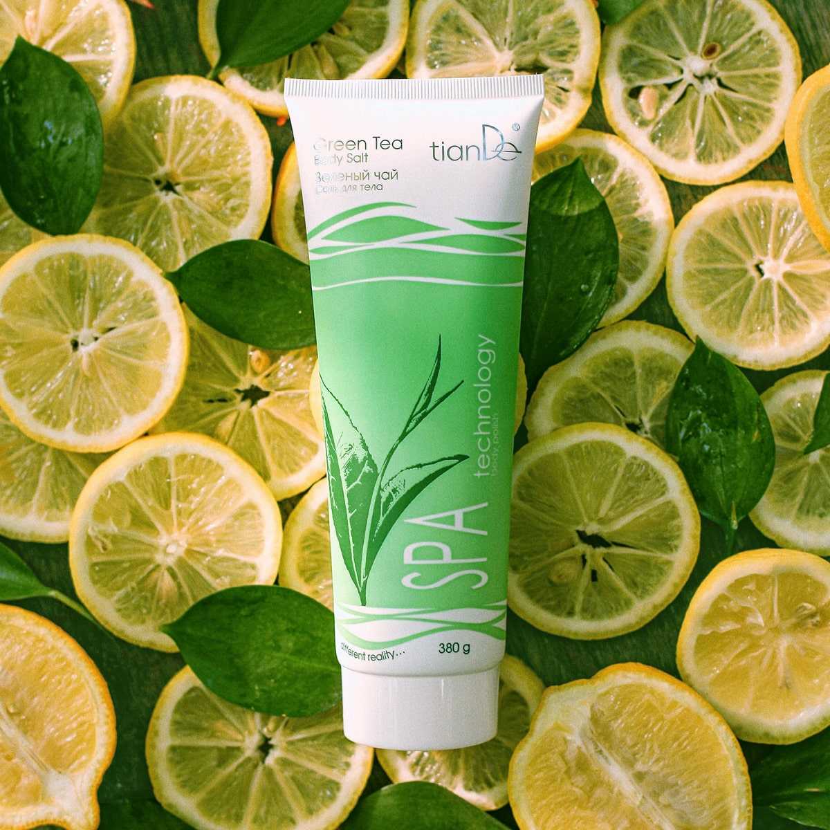 Зеленый чай насыщает кожу витаминами и антиоксидантами, питает, предотвращая преждевременное увядание. Мельчайшие кристаллики соли мягко удаляют отмершие клетки, стимулируя процесс регенерации. Обладая легким эффектом пилинга, соль активизирует кровообращение, выводит токсины, повышает тонус и эластичность кожи, способствует избавлению от целлюлита.