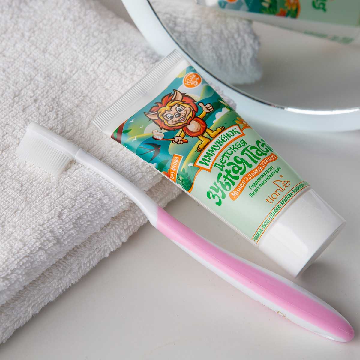 Прививаем правильные привычки с детства вместе с TianDe! Детская зубная щетка «Проденталь Джуниор» разработана для молочных и постоянных зубов. Мягкие ворсинки щетки обеспечивают бережную чистку чувствительной эмали детских зубов, а также чистку языка и десен, на которых скапливается до 90% бактерий полости рта. Зубная щетка эффективно удаляет зубной налет даже в труднодоступных местах, мягко массирует десны, обеспечивает качественную гигиену полости рта. Эргономичная форма щетки – для комфортного применения, правильной и надежной фиксации в руке. Зубная детская щетка от «ТианДэ» предназначена для детей от 6 лет, но под присмотром родителей может использоваться с 4 лет. Мягкая щетка подходит для брекетов. Для девочек, для мальчиков – зубная детская щетка понравится всем! Идеальна для зубов и зубиков!