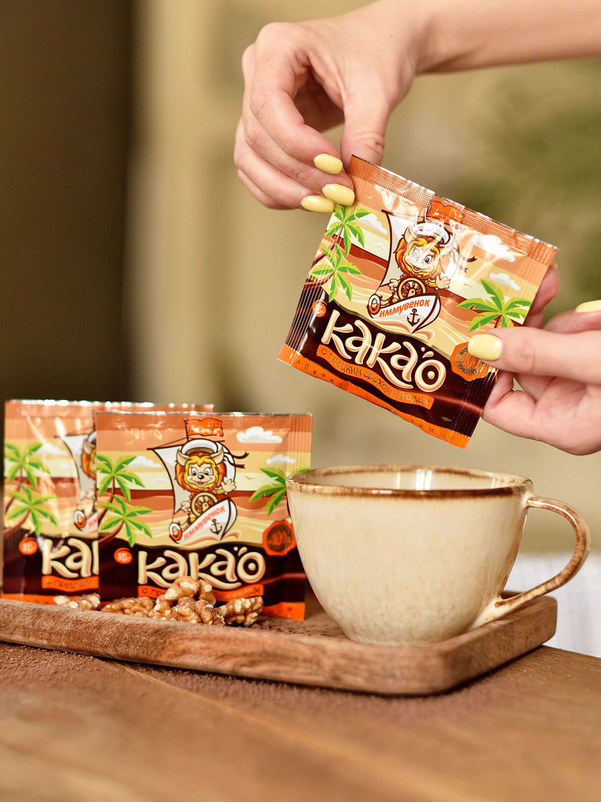 Легко ли ребенку дать что-то полезное? Многие согласятся с тем, что очень часто приходится идти на уговоры, а иногда даже на шантаж. А вот сладости и шоколад зачастую нужно прятать. Специалисты корпорации упаковали пользу во вкусное лакомство – «Какао с грецким орехом и йодом», которое ребенок может пить в компании уже полюбившегося героя, «Иммувенка». Этот на 100% натуральный продукт позволяет насладиться вкусом, укрепить иммунитет, а также восполнить суточную норму йода. Недостаток йода может привести к снижению работоспособности, способности к обучению, отставанию в росте и развитии и многим другим последствиям. В одном саше «Какао с грецким орехом» содержится 50 мкг йода – 30% от рекомендованного уровня потребления в сутки. Этот напиток на основе алкализованного какао, кэроба (здорового заменителя шоколада), протеина грецкого ореха и йода понравится не только детям, но и всем родителям! Погрузись в атмосферу детства и отличного настроения с пользой для организма.