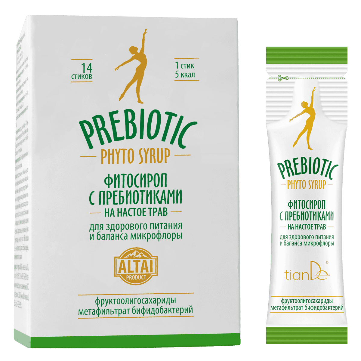 Здоровое питание и баланс микрофлоры! Эти важные задачи – основное направление действия фитосиропа с пребиотиками. Специальный функциональный пищевой продукт без ГМО, сахара, красителей и ароматизаторов создан на Алтае. Сироп со сниженной калорийностью (в 1 порции всего 5 ккал) разработан для нормализации микрофлоры кишечника. В его составе эффективные пребиотики (сироп инулина, метабиотик и фруктоолигосахар), а также водный настой смеси трав. Активные компоненты сиропа: - работают во всех отделах кишечника; - улучшают работу пищеварительной системы; - стимулируют активность полезной микрофлоры кишечника; - способствуют устранению проявлений метеоризма, диареи, синдрома раздраженного кишечника; - оказывают обволакивающее действие на слизистую оболочку желудка, уменьшают воспалительные явления; - подавляют процессы брожения в кишечнике, снижают болевые ощущения, спазм, отек слизистой; - способствуют повышению иммунитета. Наслаждайтесь легкостью и своей яркой активной жизнью!